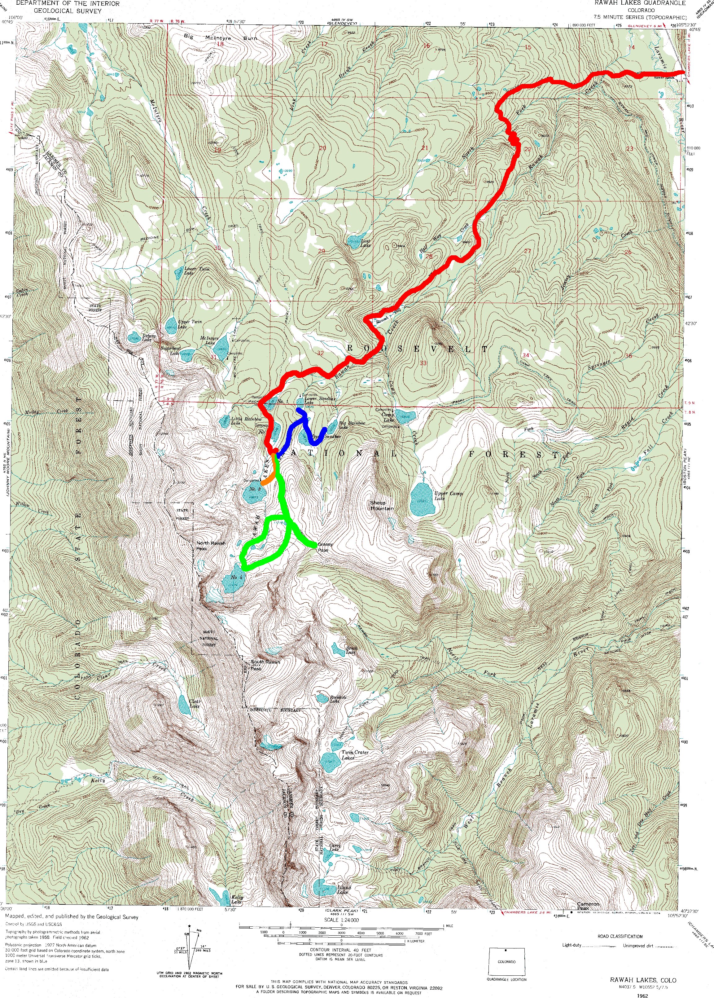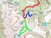 BLUE--the 2nd day's afternoon's hike to Sandbar and Big Rainbow Lakes |